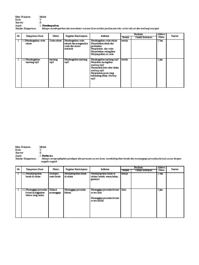 Silabus bahasa jawa kelas 4 semester 1 dan 2. Silabus digunakan untuk menyebut suatu produk pengembangan kurikulum berupa penjabaran lebih lanjut. Dalam posting rpp/silabus/prota/promes bahasa jawa sd/mi 1,2,3,4,5,6 ktsp 2015 berisi lengkap semua perangkat pembelajaran yang siap untuk digunakan dalam tahun pelajaran baru, bagi bapak ibu guru sekalian. Soal pts bahasa jawa kelas 3 sd semester 2 (genap) dan kunci jawaban. Silabus kelas 1 semester 2.